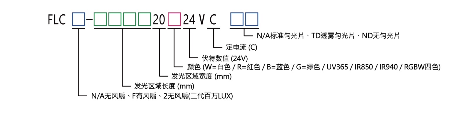 - FLC2无风扇系列可以达到跟FLCF风扇版系列一样亮度